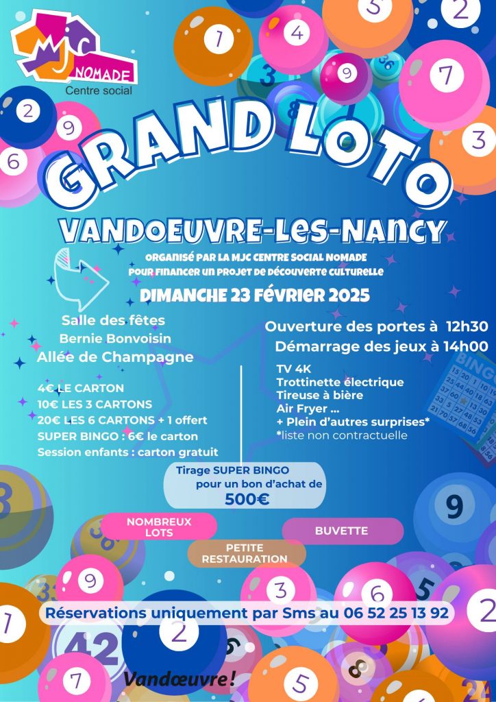 Blog Grand Loto – Dimanche 23/02/25 21 février 2025 Nomade Commentaires fermés sur Grand Loto – Dimanche 23/02/25 Nouvelle édition, le dimanche 23 février à la salle des fêtes Bernie Bonvoisin, à partir de 12h30. On vous attend pour passer un bon moment et repartir avec de beaux lots. Nomade Navigation de l’article PreviousNext