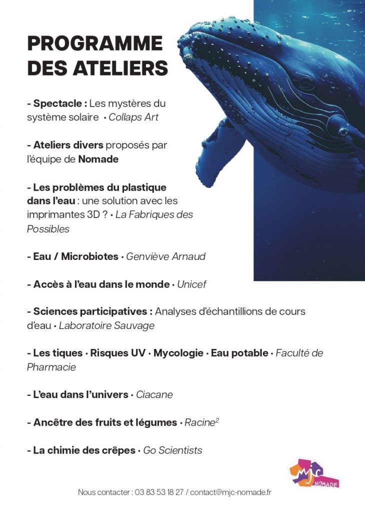 Cette année, le thème proposé est Océan de Savoir, des ateliers et un spectacle vous seront proposés le Mercredi 9 et Samedi 12 (le jeudi et vendredi étant réservés aux scolaires).